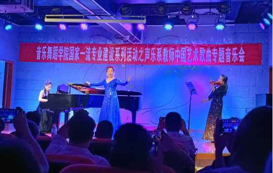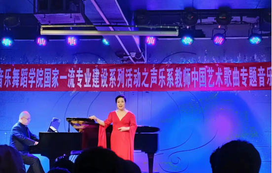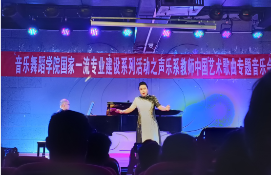“讲好中国故事、传播中国声音”。此次音乐会以“中国艺术歌曲”为主题,是学院声乐系对中国声乐艺术歌曲教学与演唱的艺术实践课堂探究,也是省级“金课”融入学科建设的重要途径,旨在通过演绎蕴含哲学情感、文化品位于一体的中国艺术歌曲,进一步加大中国传统文化声乐经典作品普及推广力度,全方位诠释“民族声乐”阳春白雪般古典大气的艺术气质与丰富内涵,深层次启发学生加深对中华优秀传统文化的理解,从而更好传承铸牢中华民族共同体意识的文化基因,让博大精深的中华艺术成为每个人血脉里流淌的文化自信。