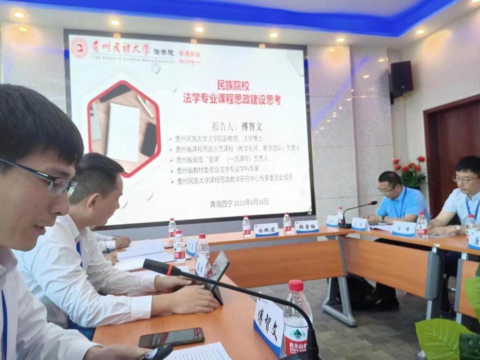 专题交流环节,相关参会院长及教师代表围绕卓越法治人才培养、法学教育改革与发展、民族院校法学学科建设等主题做了交流发言。我院傅智文副教授以“民族院校法学专业课程思政建设思考”为题做了交流发言,他介绍了法学院开展课程思政的建设情况,以及其本人开展民族法学课程思政示范课程建设中的具体做法和心得体会。