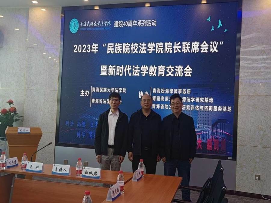 2023年6月16 -18日,在青海民族大学法学院建院四十周年之际,青海民族大学法学院、青海省法学研究所主办了2023年“民族院校法学院院长联席会议”暨新时代法学教育交流会,参会单位有中央民族大学等十余所民族院校;参会人员有中国人民大学、天津大学等高校的专家学者60余人。我院副院长张帆教授、刘宏钊副教授和傅智文副教授参会。
