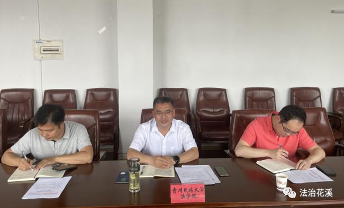 为探索校地融合新路径,助推法治建设工作高质量发展,6月1日下午,花溪区司法局田景文局长一行与贵州民族大学法学院共同组织开展“校地合作”交流座谈会。