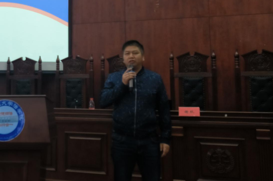 第三,由贵州省司法厅公共法律服务管理处三级调研员申状平向同学们介绍“公证进校园”活动的目的,特别是如何拓宽同学们的就业进行了重点介绍。