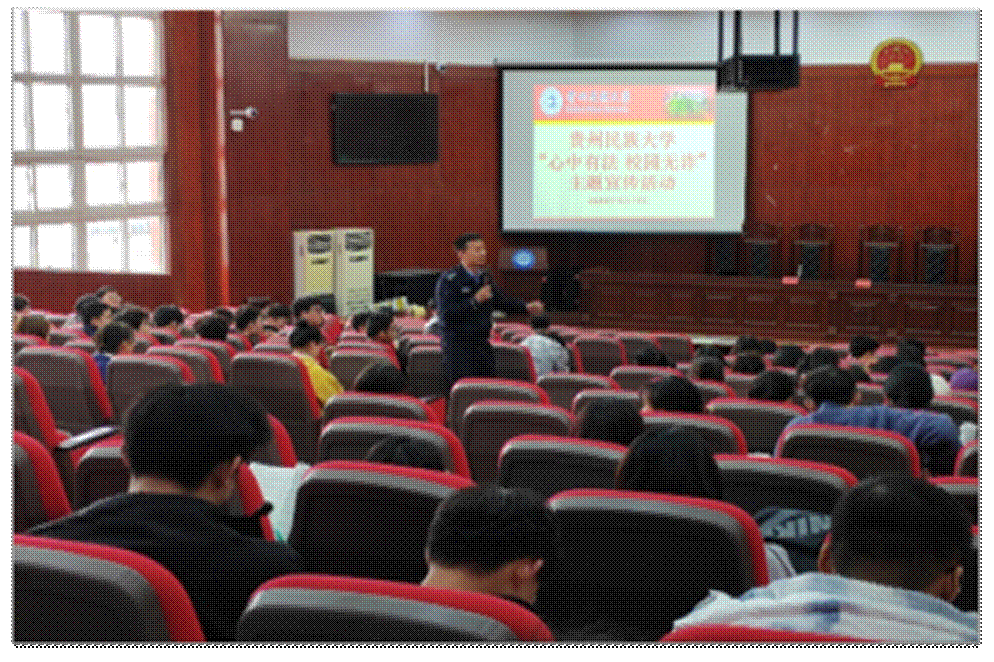 为进一步提高师生防诈骗意识,掌握防诈骗技能,构建和谐安全校园,3月17日下午,贵州民族大学法学院邀请贵阳市公安局花溪分局松山派出所警官赵普林,在模拟法庭作“心中有法 校园无诈”反诈知识宣传教育讲座,学院近300名师生参加。讲座由学院党委委员、副院长张帆教授主持。