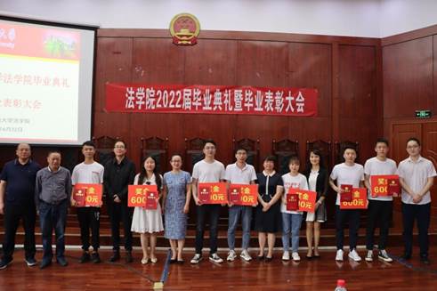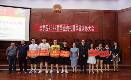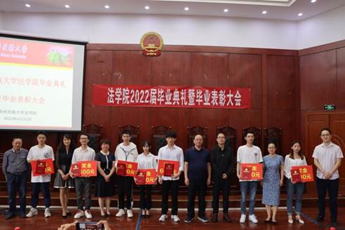 俞俊峰副院长宣读2022届优秀学生干部表彰名单、张红书记宣读2022届考取硕士、博士的升学表彰名单,由出席典礼的学院领导、教师代表为优秀学生干部、硕博升学学生颁奖,并对获奖毕业生表示祝贺,勉励同学们带着这份荣誉再接再厉,在今后的学习生活中继续发光发热。