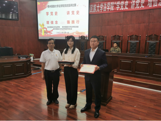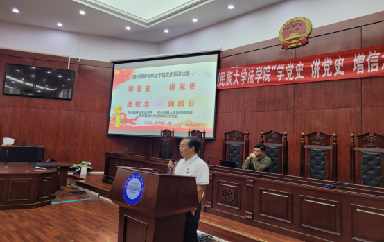 2021年6月1日,法学院“学党史讲党史增信念强践行”党史宣讲比赛在学院模拟法庭进行。法学院党委书记石世文同志出席,法学院杨轶、丁莲媛、高俊英、刘飞越老师担任评委。学生党员、学生干部、入党积极分子现场观赛。