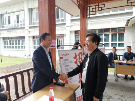 法学院党委书记石世文与用人单位交谈